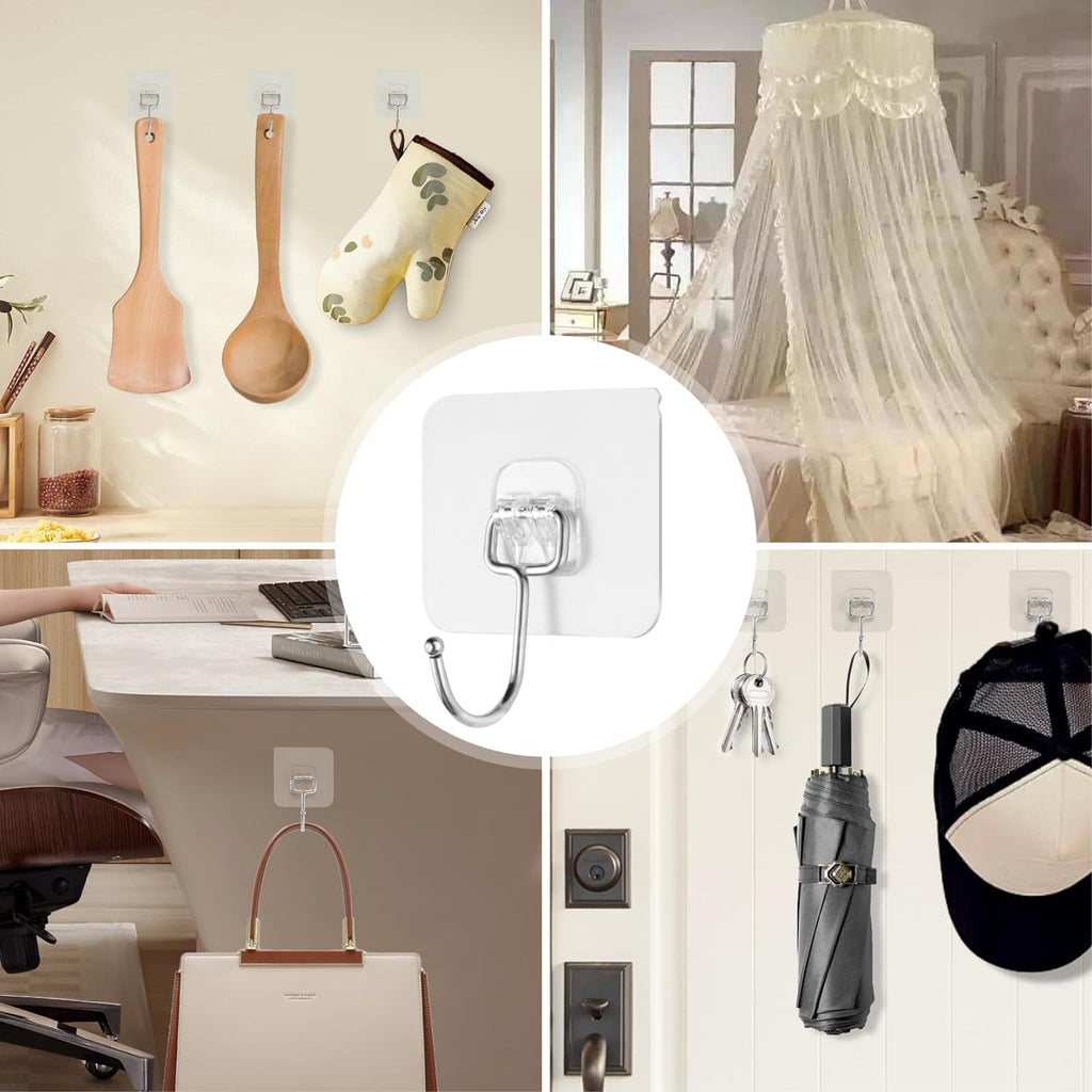 - EASY TO USE - Stick clear adhesive hooks easily to clean and reposition without surface damage, no need to nail and drill the wall. You can utilize wall hooks repeatedly after cleaning and dry. They are strong and can surely hold your accessories in place on any surface. Good adhesive wall hooks hooks are never enough