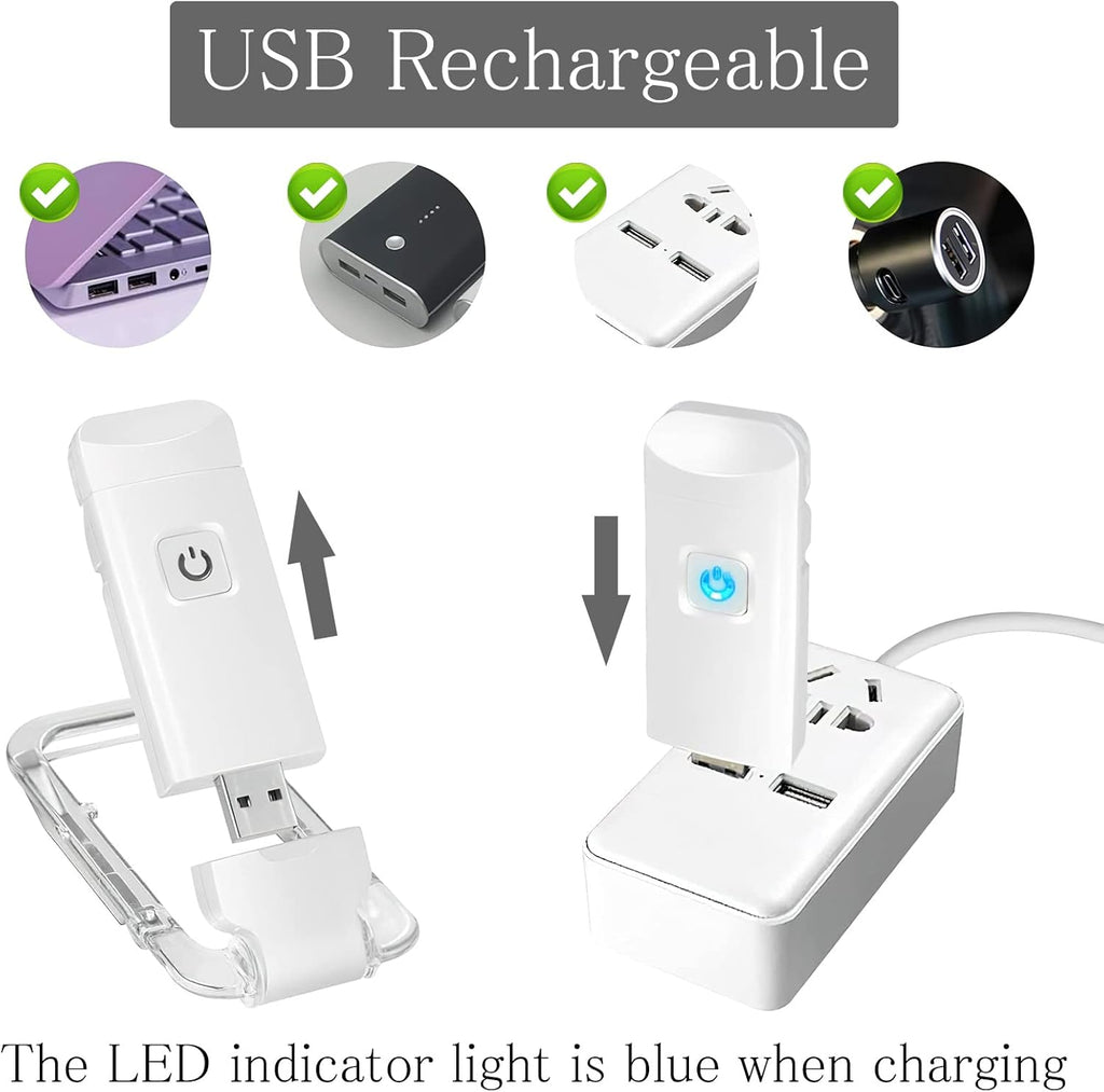 - 【USB Rechargeable】 -- The built-in USB charging port of the clip book reading light can be charged by any universal USB interface like computer power bank or other USB charging port , the battery out put is 0.15W, 3.7V,200mA.Safe easy and convenient.