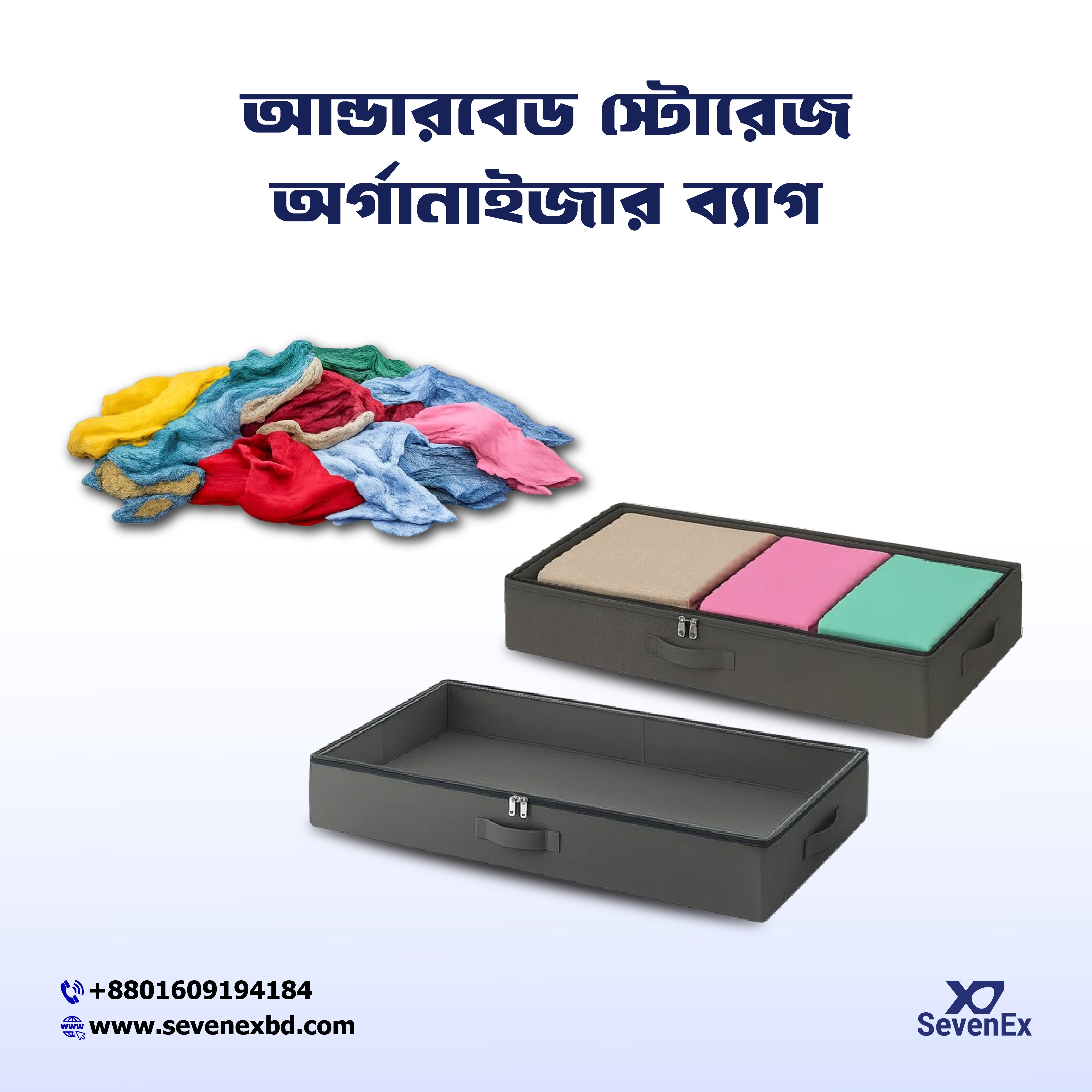 The clear PVC top lets you easily view contents without opening the bag, while the dual silver zipper pullers ensure smooth access from either side. Reinforced handles on both sides make lifting and sliding effortless. Foldable and lightweight, this organizer is perfect for bedrooms, dorms, and apartments where space is limited.